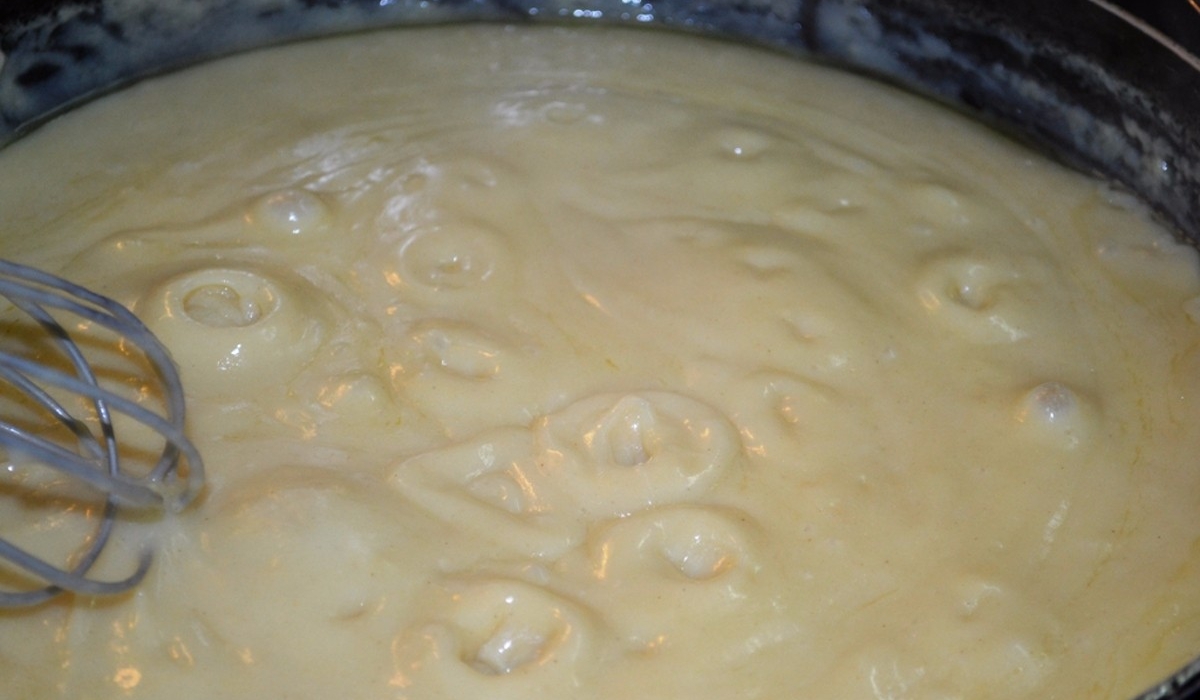 In mortar bowl grind the garlic and place it in a pot with water and bring to a boil. When it comes to boil, add the saffron, the salt and the oil. In a hot pan, fry the flour on a low heat until red brown. Slowly drizzle in broth from the pot to the pan until thicken. Serve piping hot.